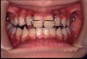 拡大スクリュウー:口蓋を拡大する事に依って、鼻中隔を正直し、鼻腔底を下げ、鼻腔の容積を増大させ、上気道の狭窄を解消し、鼻呼吸を促す。アデノイドが肥大している場合、拡大に依って、気道が確保され、そして、次第に縮小していく。気道が確保されれれば、全身の姿勢が良くなるはずである。1週間に1mmの拡大の比率で8~10mm拡大し、歯列弓を取り囲んで、制限する頬筋、犬歯筋を押しやる。適切に拡大されれば、上顎の成長方向は正しい前上方方向に変化する。前方成長によって、頬骨が出れば、前突した、歯牙が受け入れられる様になる。拡大の為に、歯列に空隙が残る。クワドヘリッリス等に依る拡大は、上顎骨を拡大するよりも、歯牙傾斜の方が強い。