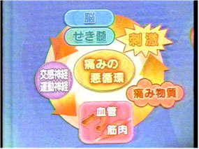 | 脊髄を通った痛みの信号は視床を経由し脳全体に広がる | 慢性疼痛患者は、感情を司る前頭葉が刺激され痛みとなって出現する |