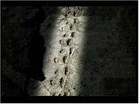 | 足跡を残したアファレンシスの骨盤 | 350万年前のアファレンシスの足跡 |